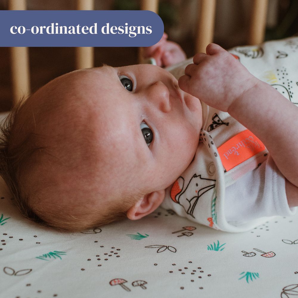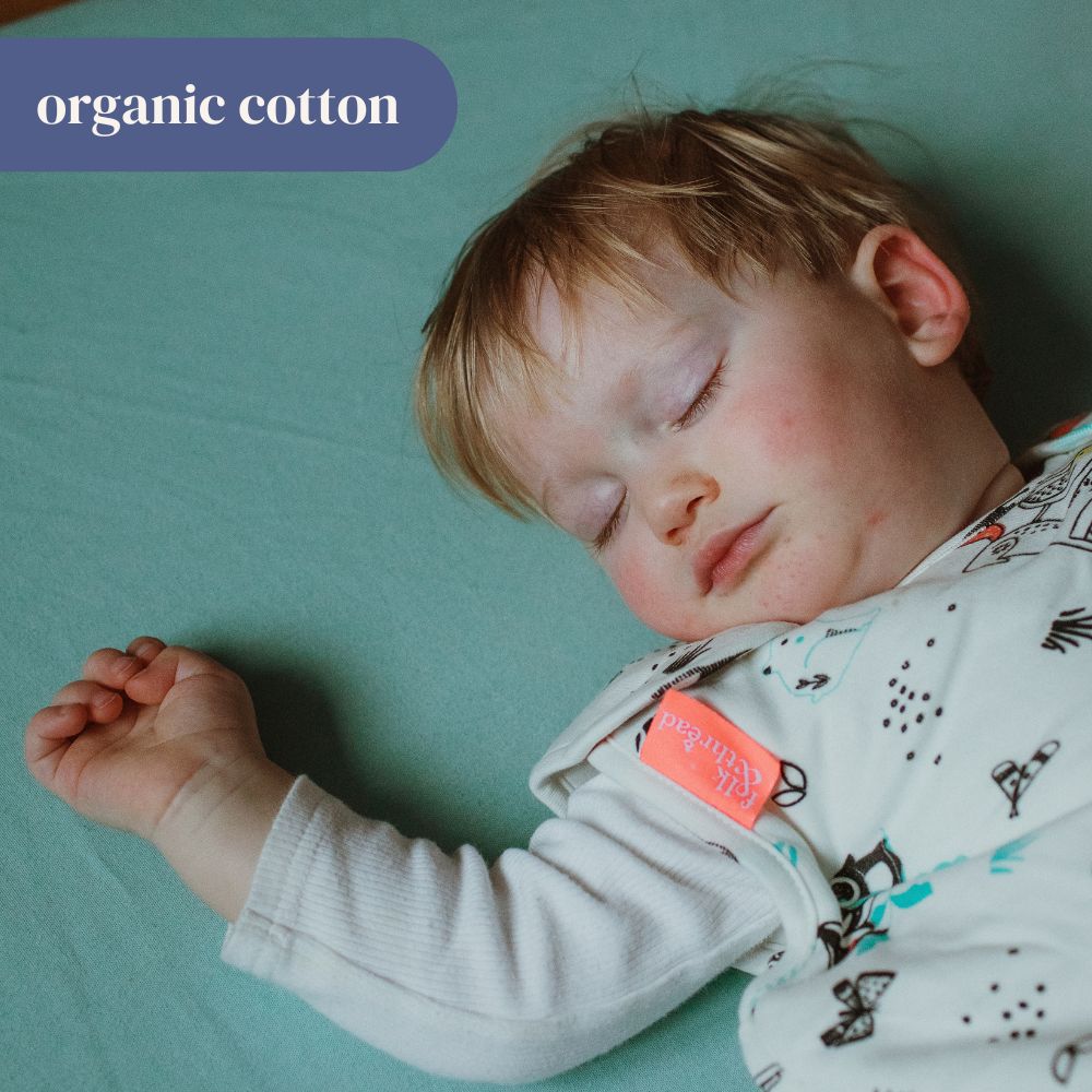 Our sink-in-ably soft cotton sheets are thickly woven from organic cotton. That's it - no man made fibres, no irritating chemical treatments - just the finest, softest strands of organic cotton harvested from the fields of our partner farms in India, and woven together into a luxurious sheet soft enough for baby skin to rest on.
